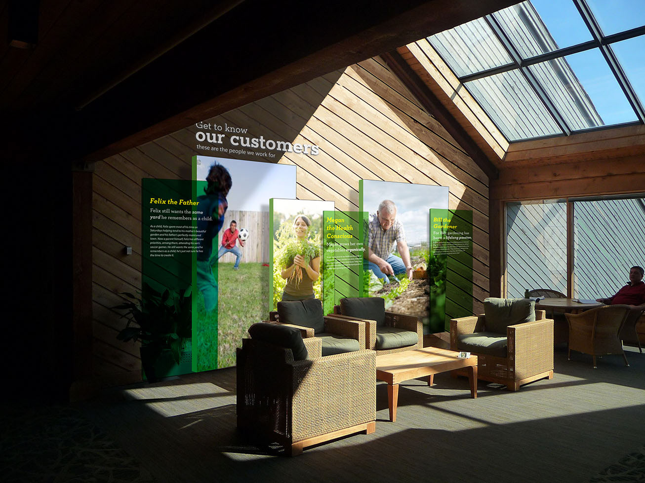 Elevations and renderings for Scott’s MiracleGro office redesign.